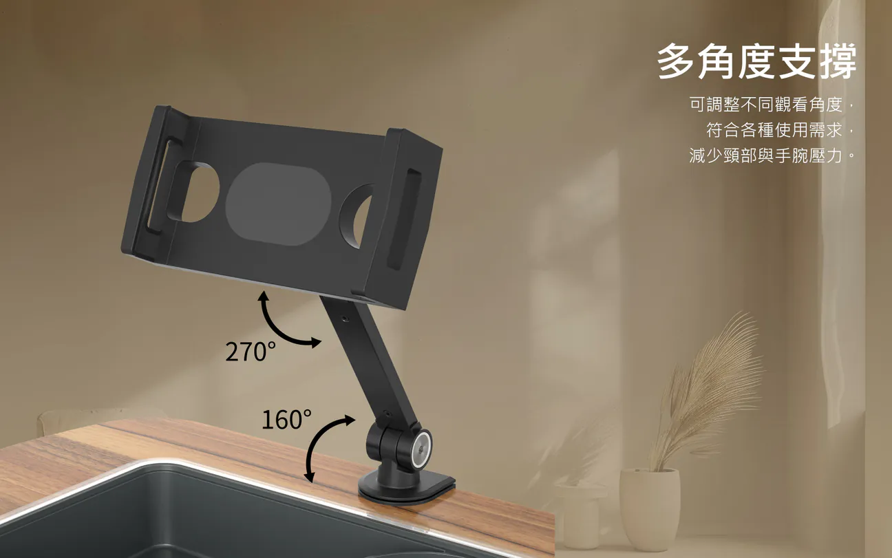 6. 廣泛相容性:可調節夾子支援 4.7 至 9.8 吋寬度的設備,可容納 4.7-13 吋 Kindle、iPad、平板電腦、手機和便攜式顯示器