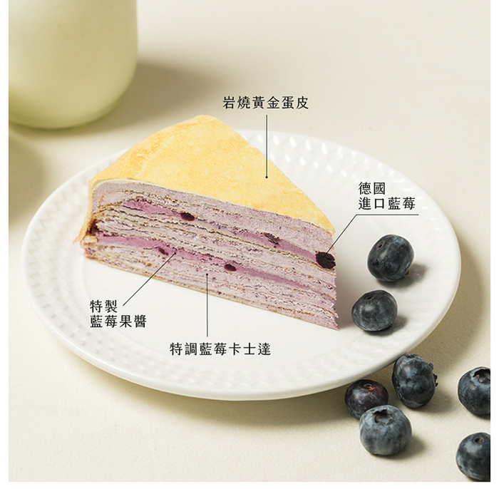 成份: 新鮮雞蛋,麵粉,奶粉,水,澱粉,鮮奶油,砂糖,藍莓,藍莓果泥,奶油,鹽。 尺寸: 8吋,高度約4cm 素葷食: 蛋奶素 保存期限: -18度C冷凍,建議7天內食用完畢,實際有效期限請見包裝標示。 產地: 台灣