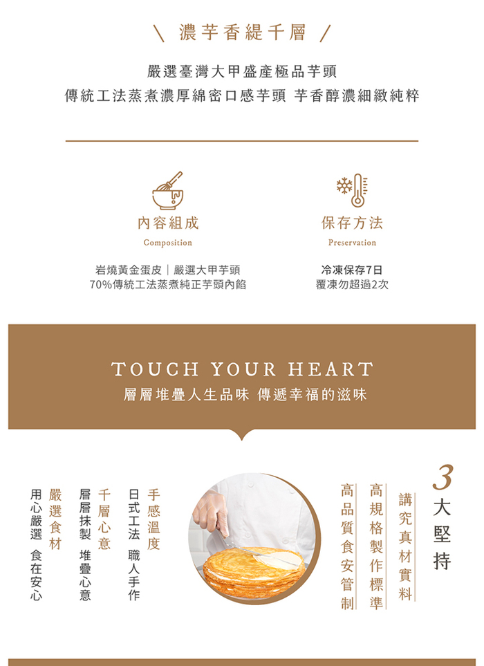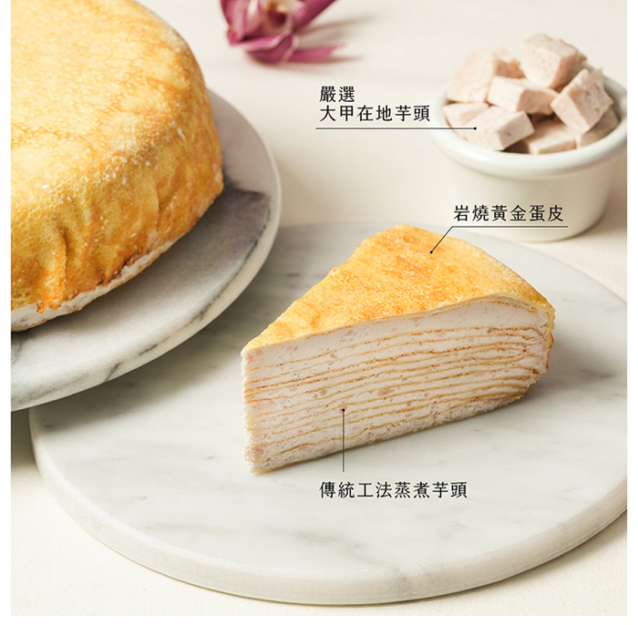 - 成份: 新鮮雞蛋,麵粉,奶油,奶粉,澱粉, 砂糖,鹽,水,新鮮芋頭,鮮奶油。