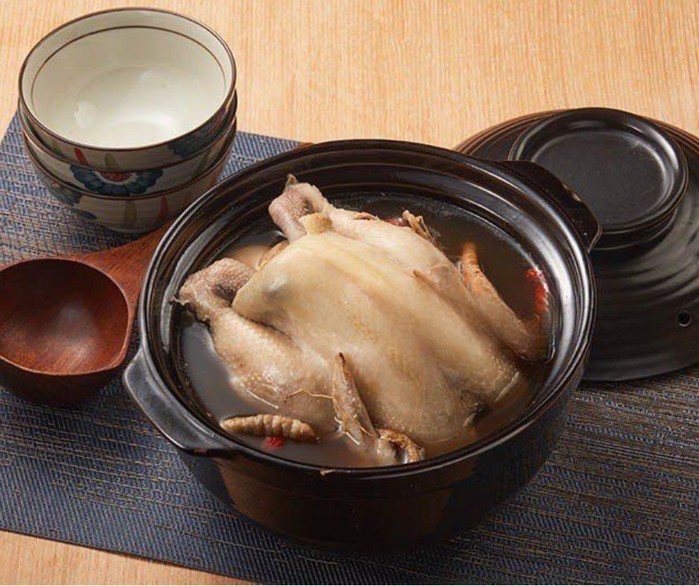 成分:水、土雞、米酒、雞汁[雞油、精鹽、冰糖、香料、酵母抽出物、玉米糖膠、複方結著劑(玉米糖膠、鹿角菜膠、氯化鉀、關華豆膠、麥芽糊精)、精鹽、醬油、當歸、枸杞、米霖[米酸酵調味液(水·米、米麹、釀造酒精、釀造醋、鹽)、甘蔗液糖、釀造醋、鹽]、桂枝、熟地、複方調味劑(L-麩酸鈉、5'-次黃嘌呤核昔磷酸二鈉、5'-鳥嘌呤核苷磷酸二鈉、琥珀酸二鈉、胺基乙酸、DL-胺基丙酸)、雞粉(麥芽糊精、、-酸鈉、、雞肉抽出物)、素冬蟲、黨參、川芎、黃耆、人鬚、冰糖、5-次黃嘌呤核磷酸二鈉、5-鳥嘌呤核昔磷酸二鈉、鹿茸片、雞肉香料[乳糖、糊精、香(中鏈三酸甘油酯、香料、三乙酸甘油酯)、二氧化矽]、肉桂