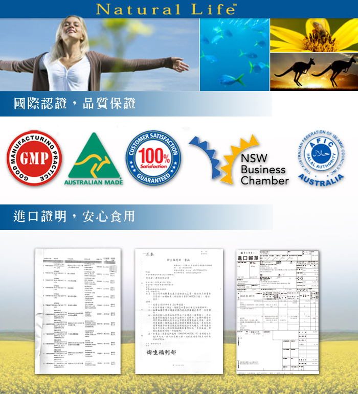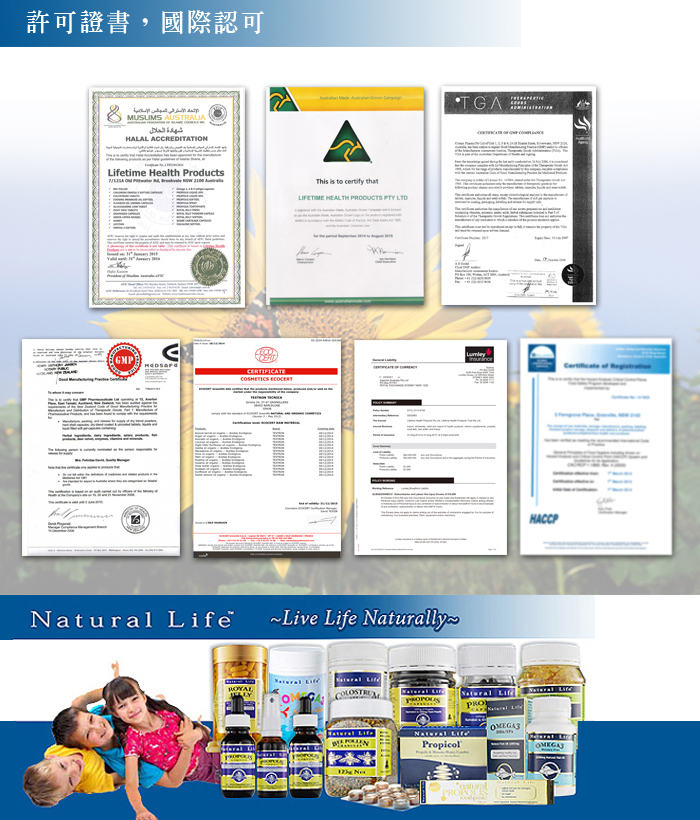 認證:本項產品通過澳洲藥物食品管理局認證,產品列管號碼AUST L 75196,
