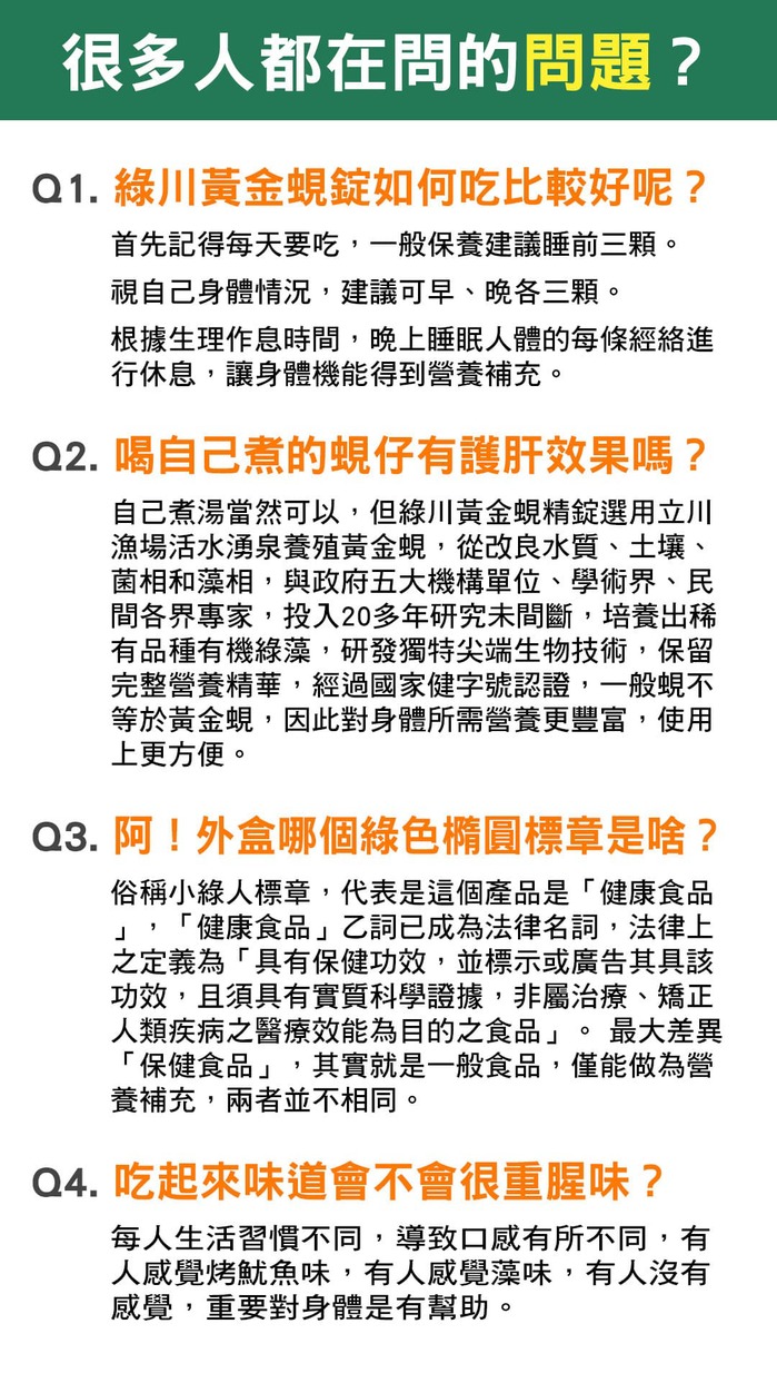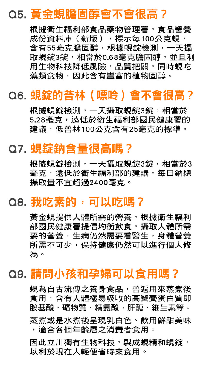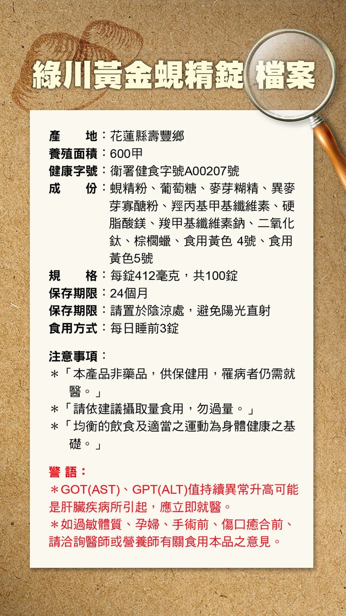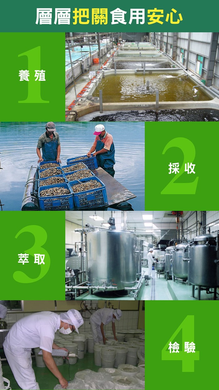 成 份:蜆精粉、葡萄糖、麥芽糊精、異麥芽寡醣粉、羥丙基甲基纖維素、硬脂酸鎂、羧甲基纖維素鈉、二氧化鈦、棕櫚蠟、食用黃色4號、食用黃色5號