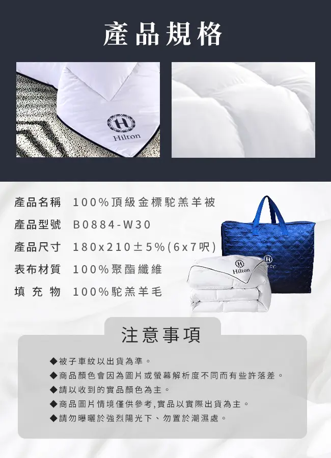 ※希爾頓寢具品牌之商品與希爾頓飯店無關,特此聲明