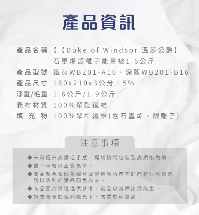 產品名稱:【Duke of Windsor 溫莎公爵】石墨烯銀離子能量被1.6公斤/二色任選