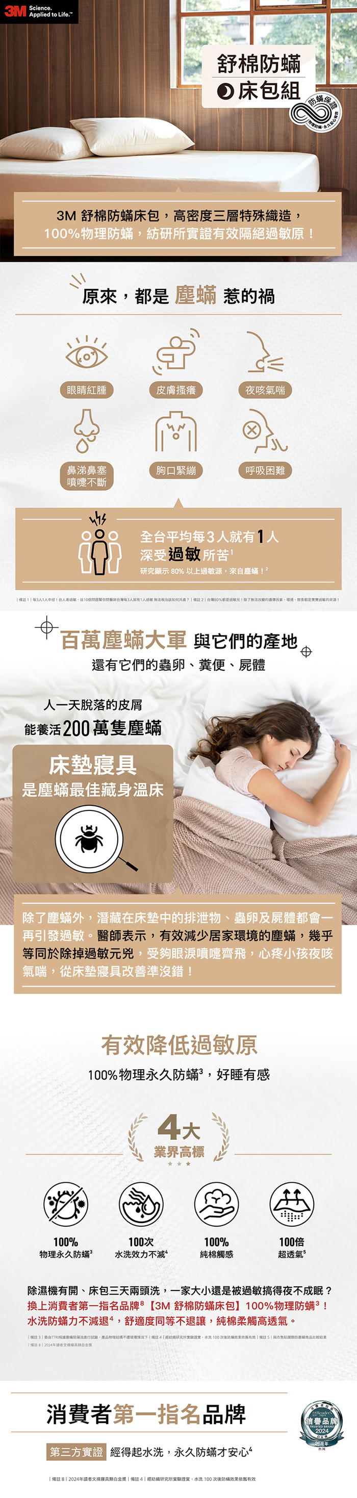 ◆100%物理永久防蹣:三層特殊結構防蹣,有效阻隔過敏源,達永久防蹣效果!