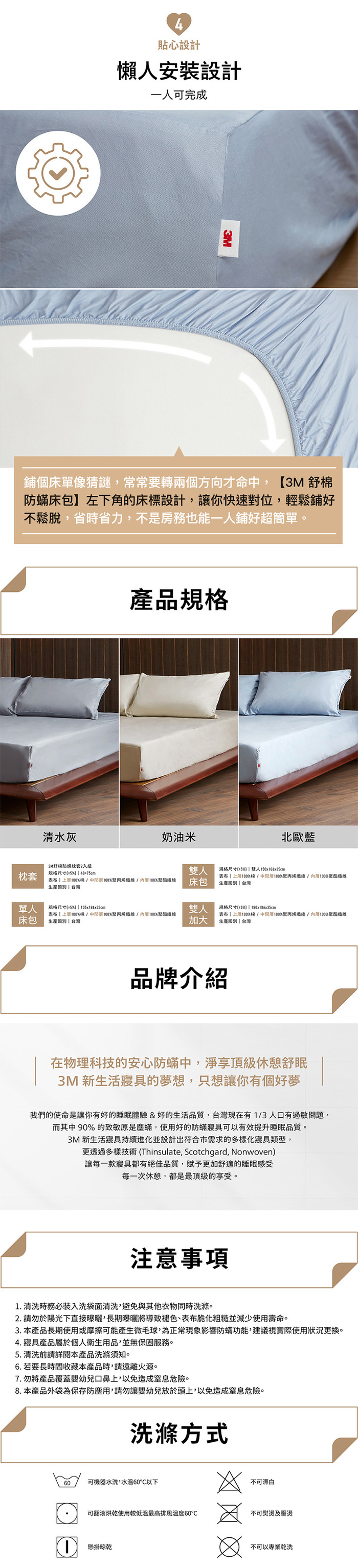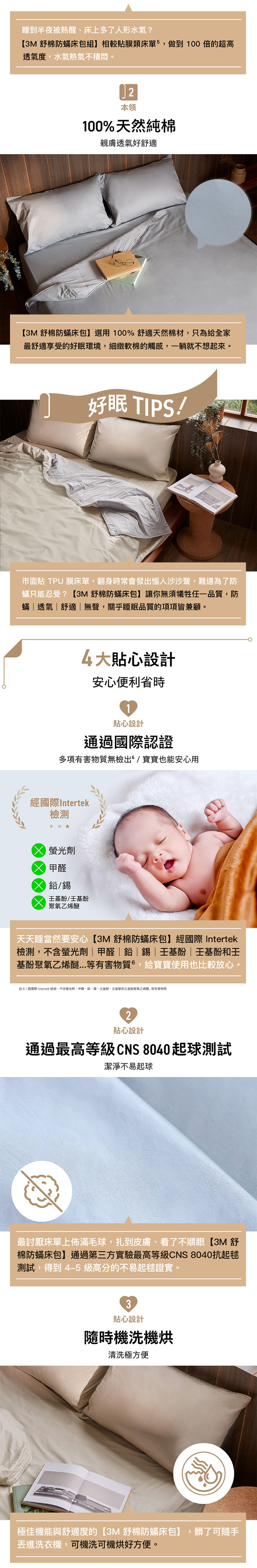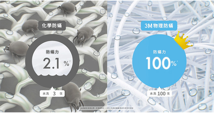 ◆耐水洗100次以上,可機烘:經紡研所證實水洗100次防蹣效果仍舊有效。