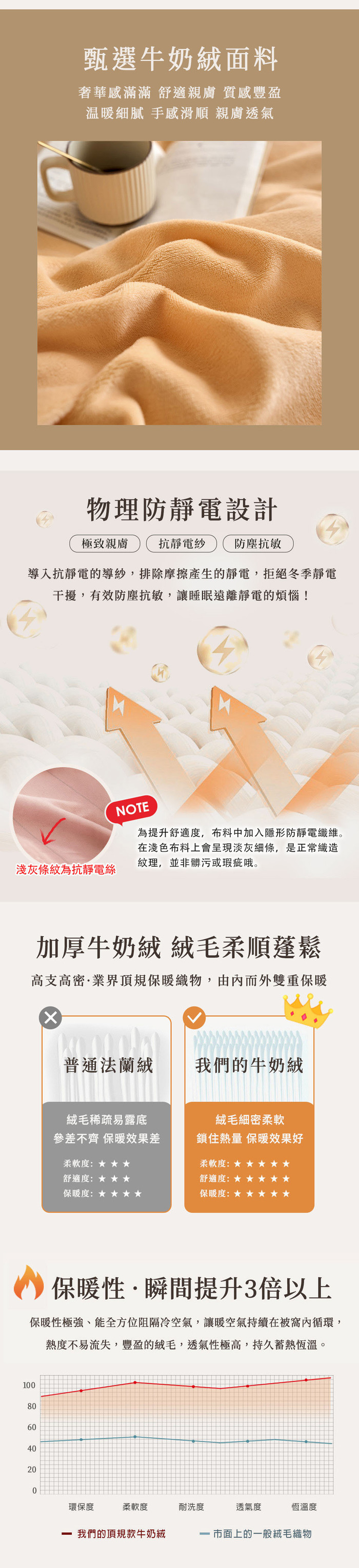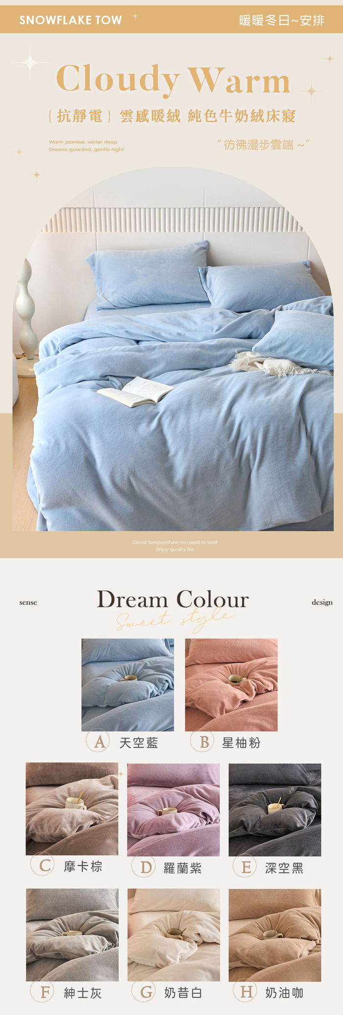 優雅純色寢具 超柔軟親膚觸感,豐厚絨毛,細膩順滑。入被保暖、熱感蓄溫,有效阻隔冷空氣,溫暖冷冷的冬天。