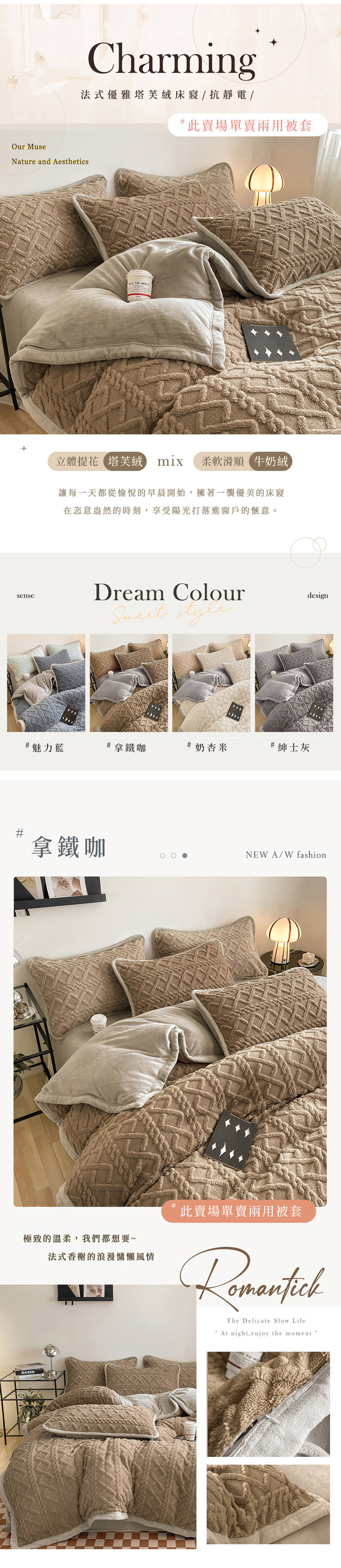 ◎塔芙絨x牛奶絨材質 法式質感床寢
