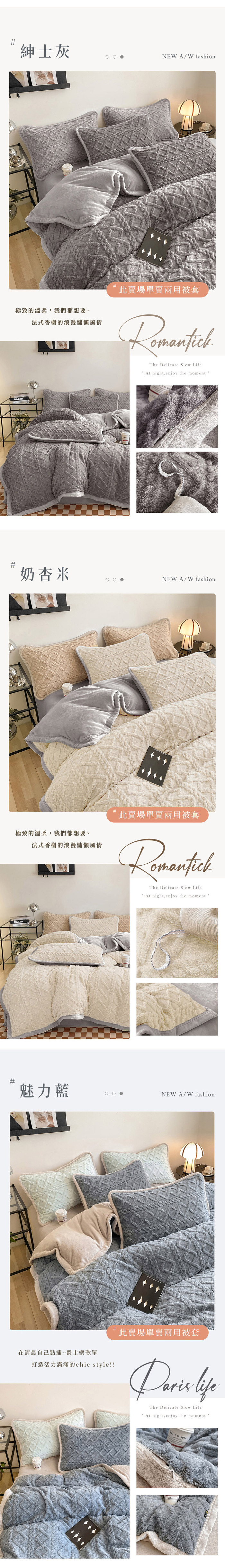 優雅純色寢具 超柔軟親膚觸感,豐厚短絨毛,細膩順滑。入被保暖、熱感蓄溫,有效阻隔冷空氣,溫暖冷冷的冬天。