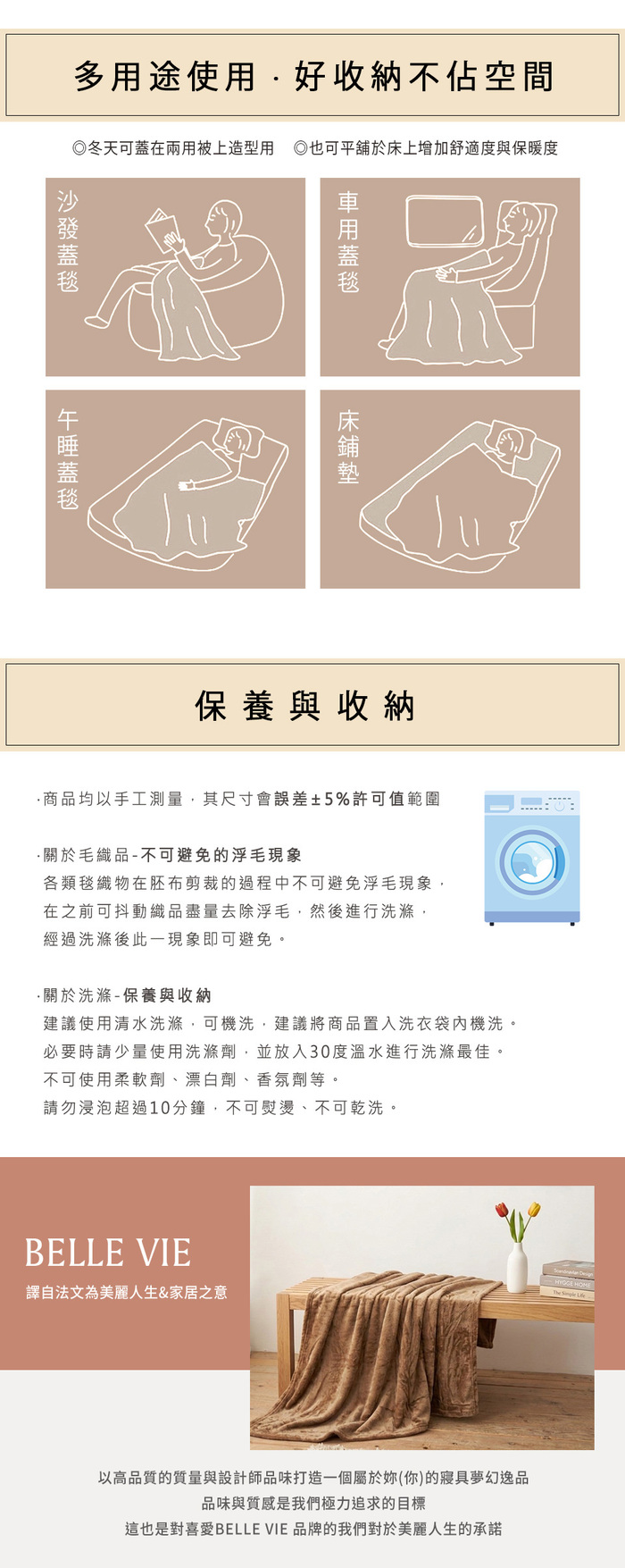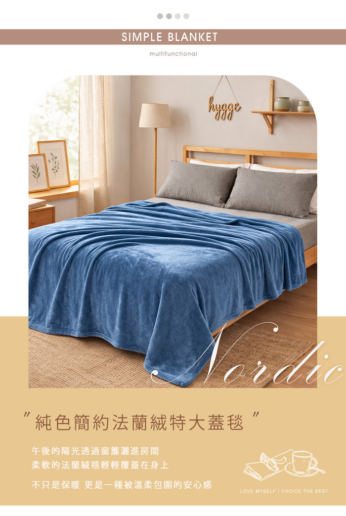 ■ 保養簡單-毛毯柔軟富有彈性,纖維細度強,耐洗不掉色,可機洗正常洗滌、低溫烘乾,快乾易清潔保養不費力!