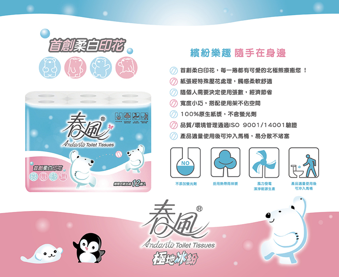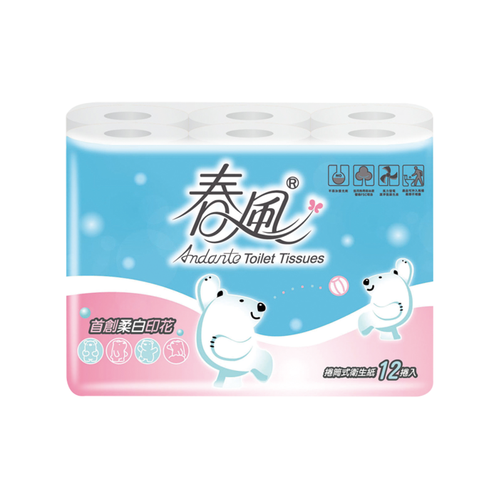 名稱:春風小捲筒衛生紙-極地冰紛柔白印花(270組*12包*8串)