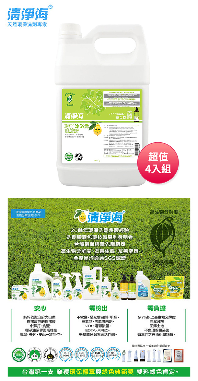 清淨海 環保沐浴露4000g超值家庭號4入組