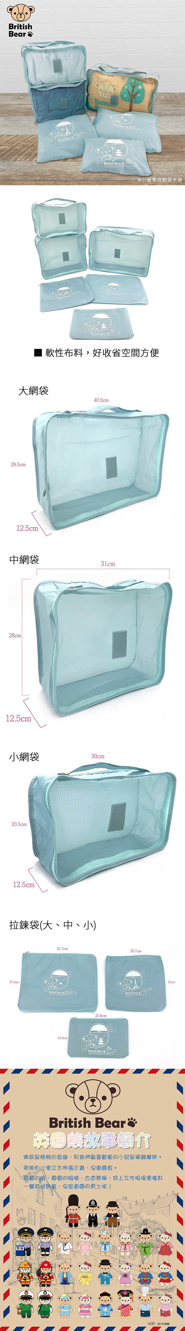 英國熊 收納旅行六件組(大+中+小網袋和大+中+小拉鍊袋) PP-064N