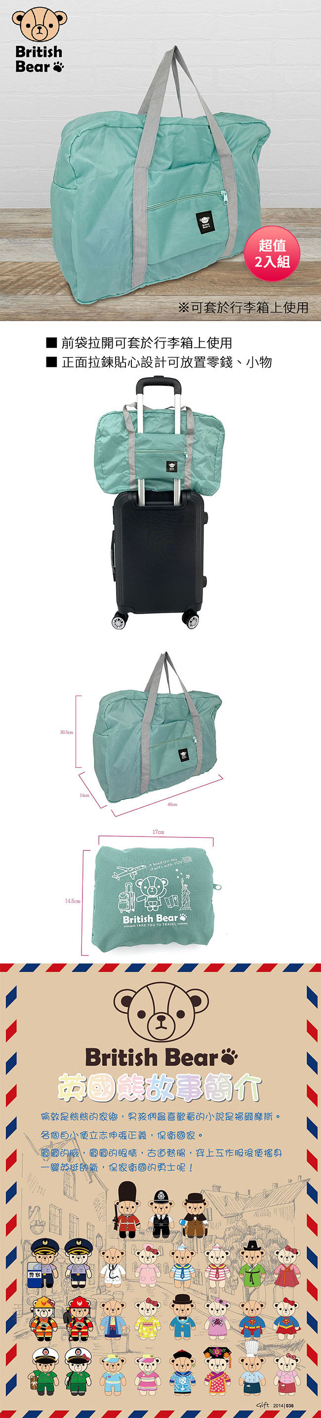 英國熊 攜帶旅行袋-綠 PP-165G 超值2入組