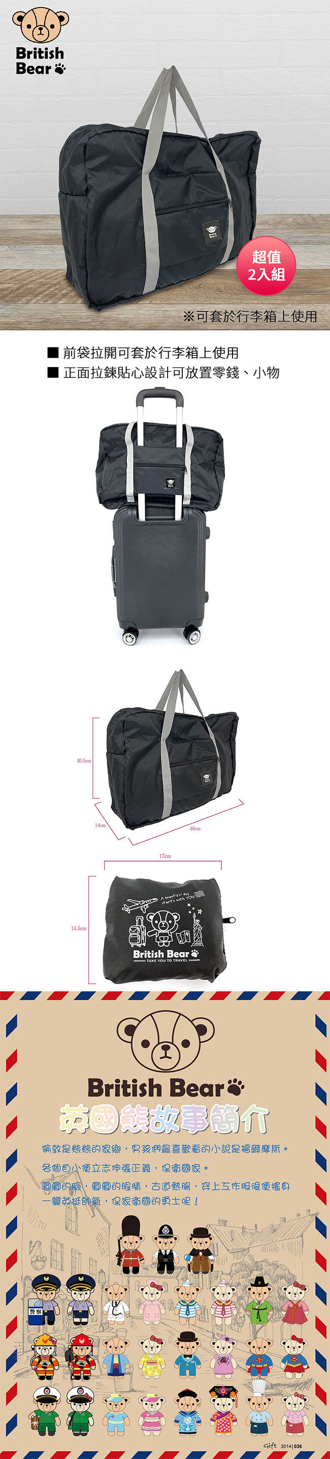 英國熊 攜帶旅行袋-黑 PP-165BL 超值2入組