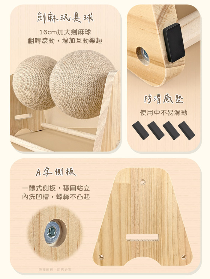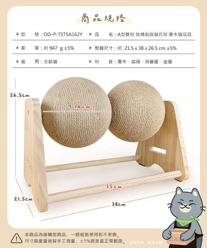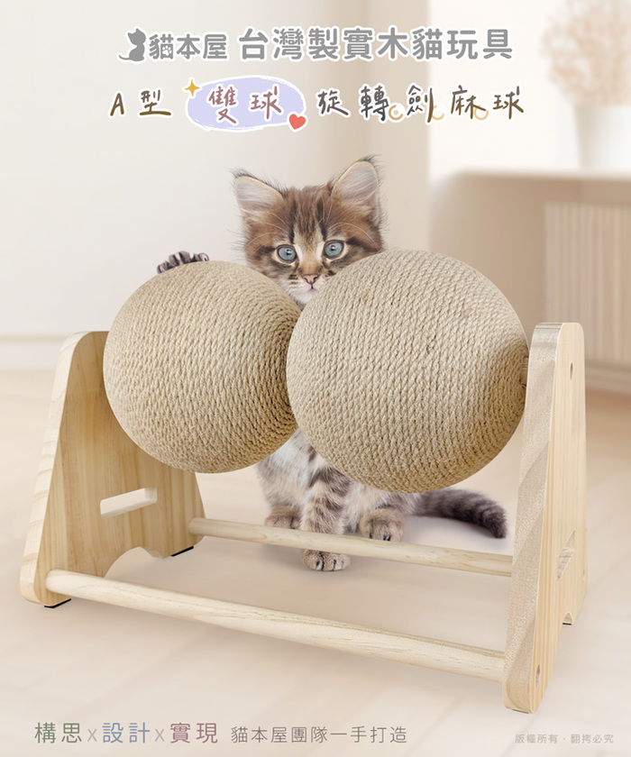 .商品名稱:貓本屋 台灣製 A型雙球 旋轉劍麻貓抓球 實木貓玩具