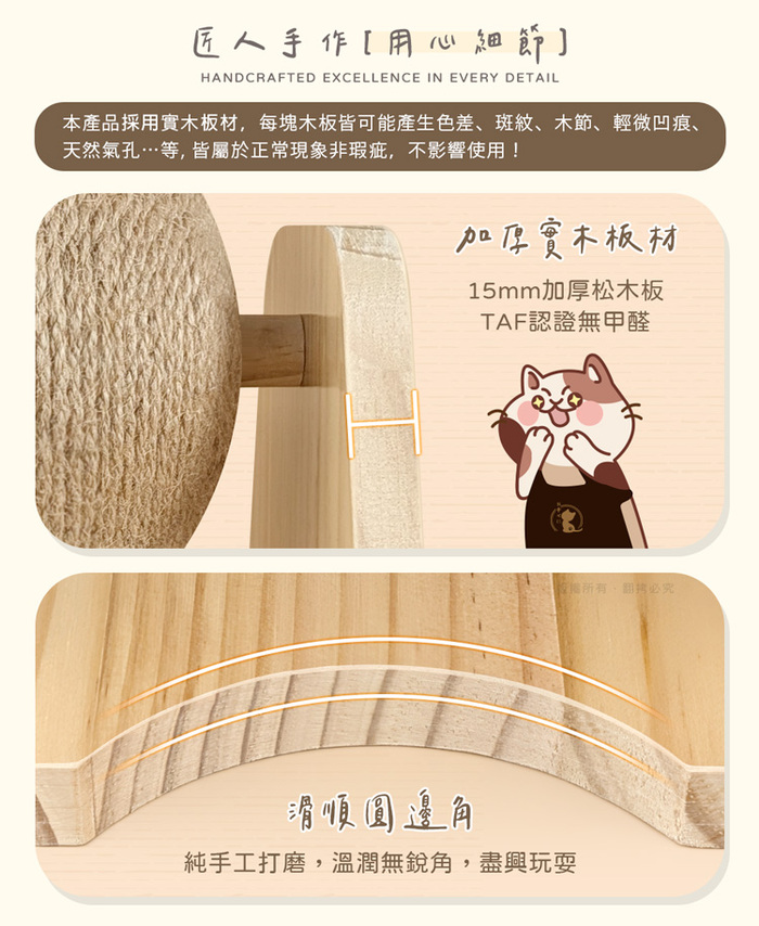 --厚實實木 x 原色劍麻繩 x 防滑設計--