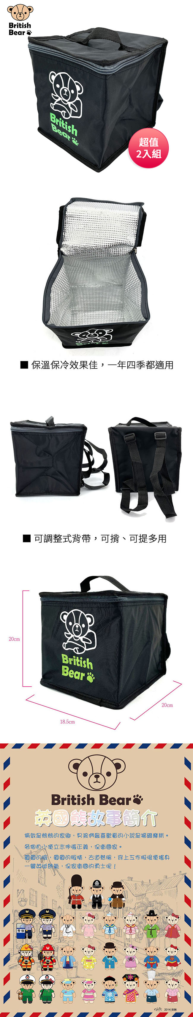 英國熊 保溫保冷大容量雙用箱包 Y-2524 超值2入組