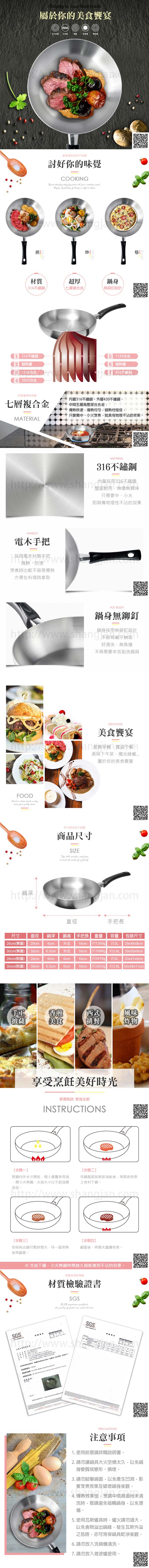 平底鍋規格:鍋身內緣#316不銹鋼 / 外身#304不銹鋼