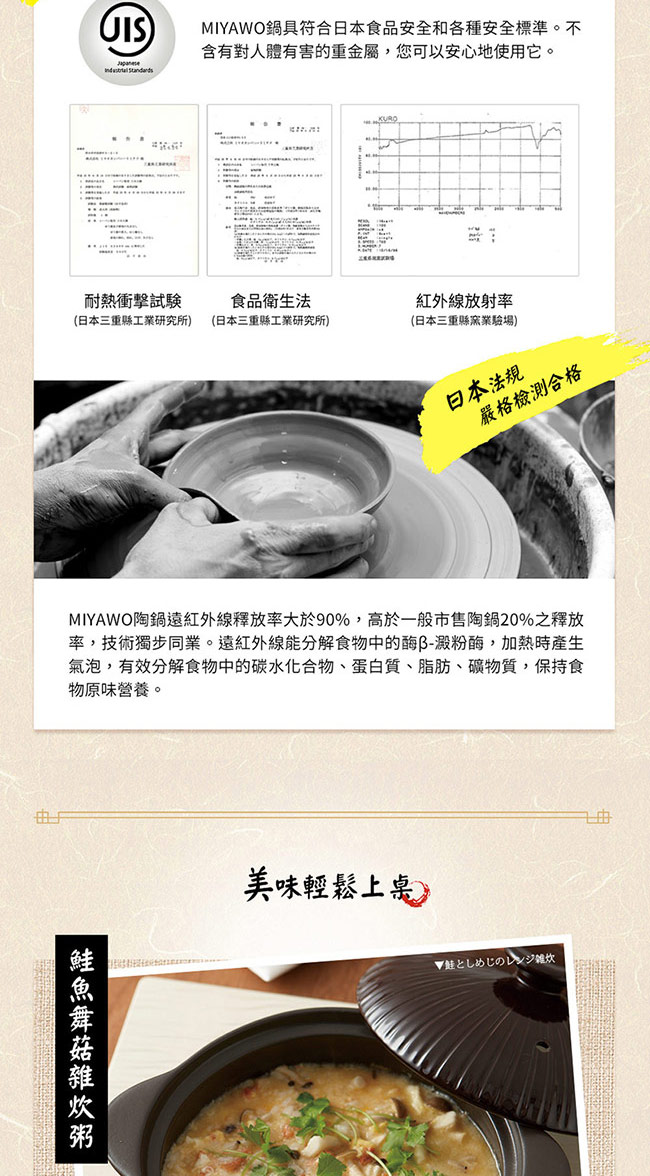 MIYAWO陶土鍋遠紅外線放射率大於90%,高於一般市售陶土鍋20%之放射率,技術獨步同業。
