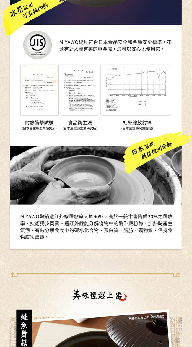 MIYAWO陶土鍋遠紅外線放射率大於90%,高於一般市售陶土鍋20%之放射率,技術獨步同業。