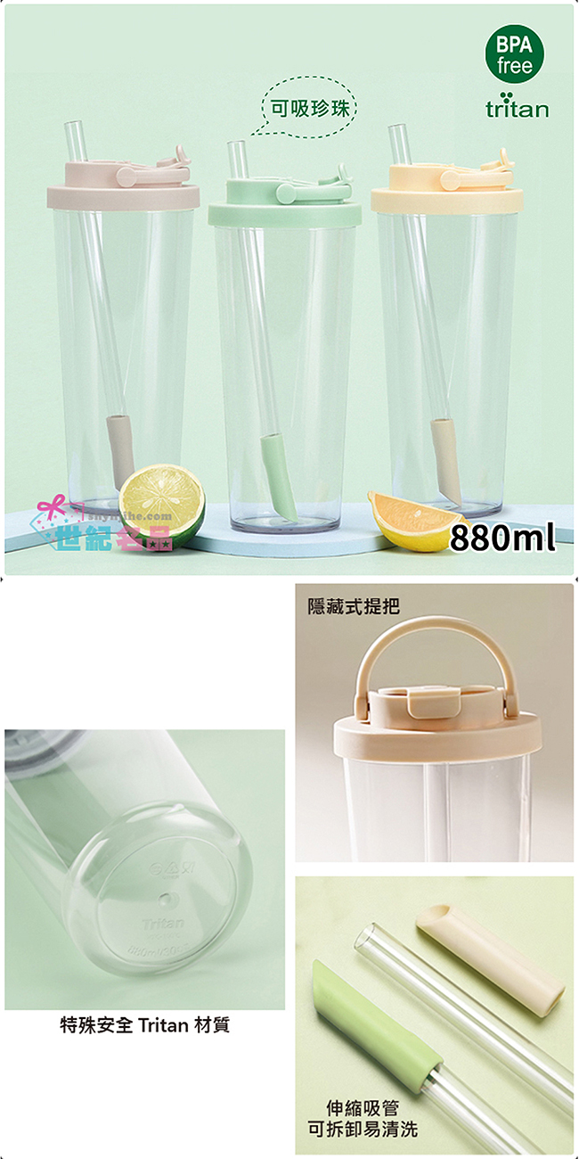 DOLEE Tritan手提飲料杯880ml附吸管(顏色隨機出貨) W16