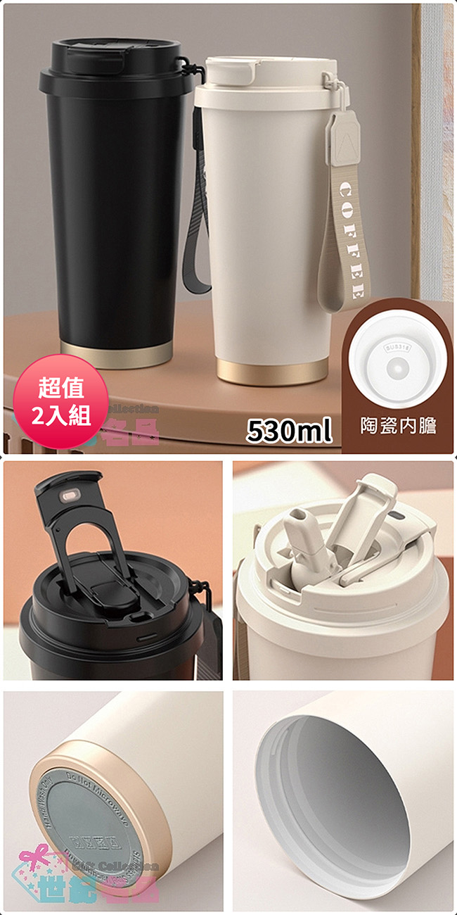 DOLEE 316陶瓷內膽雙飲隨行咖啡杯530ml(顏色隨機出貨) W80 超值2入組