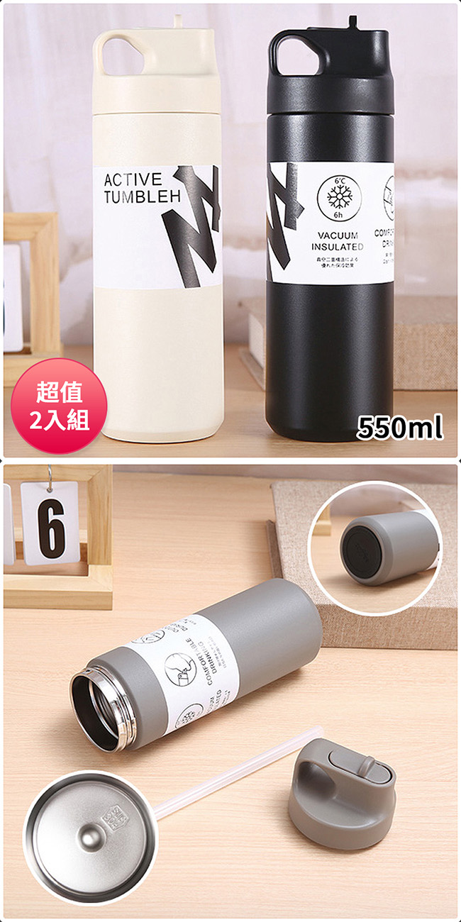DOLEE 304不鏽鋼簡約運動水壺550ml(顏色隨機出貨) W56 超值2入組