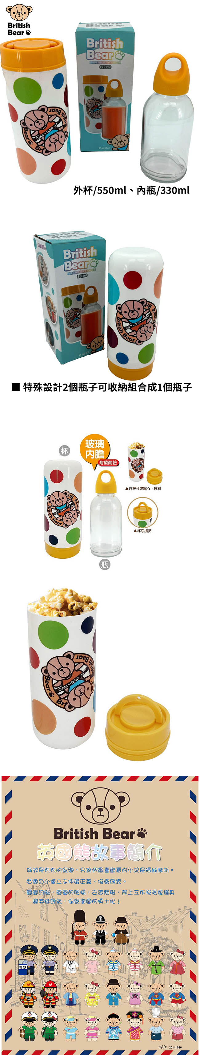 英國熊 胖胖玻璃提把杯中瓶880ml P-A153 超值2入組