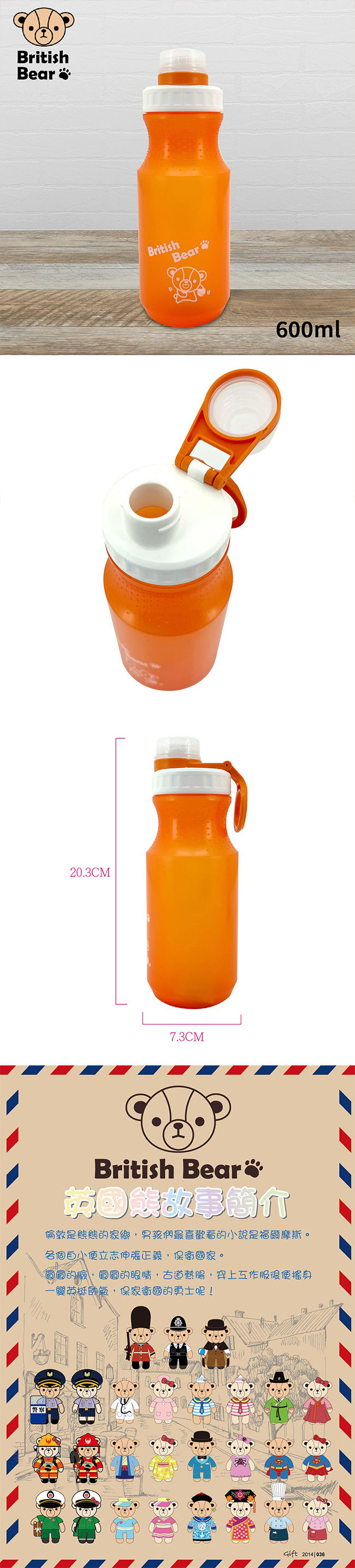 英國熊 環保隨身瓶600ml(橘色) P-B0186O