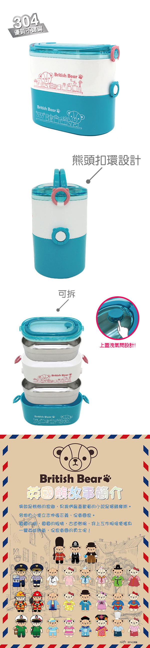 英國熊 內膽304雙層不鏽鋼疊疊飯盒 UP-D70