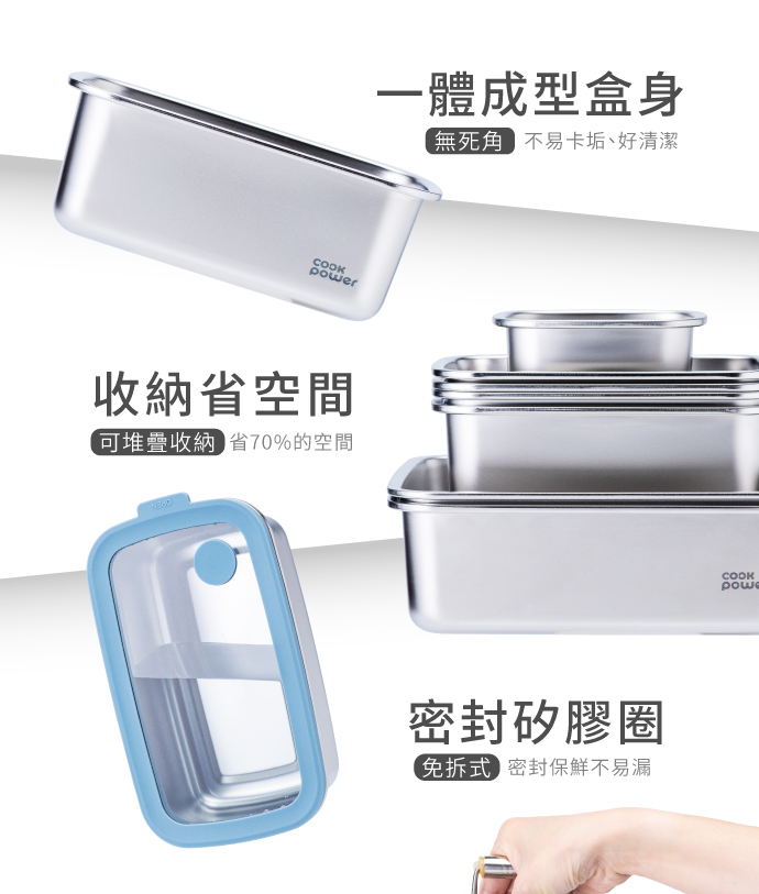 【 【CookPower 鍋寶】鮮盾pro可微波304不鏽鋼保鮮盒_勻稱4件組】