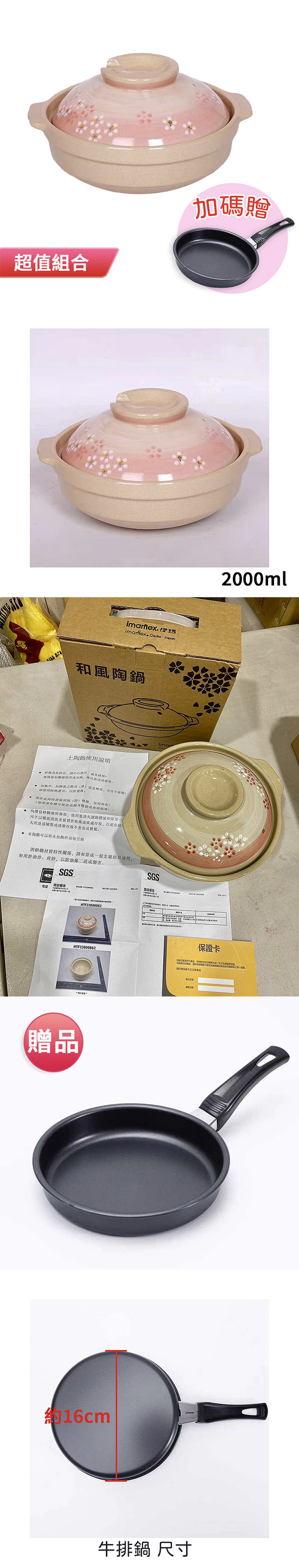 伊瑪 22cm和風陶瓷砂鍋2000ml 加碼贈 16cm碳鋼合金牛排鍋
