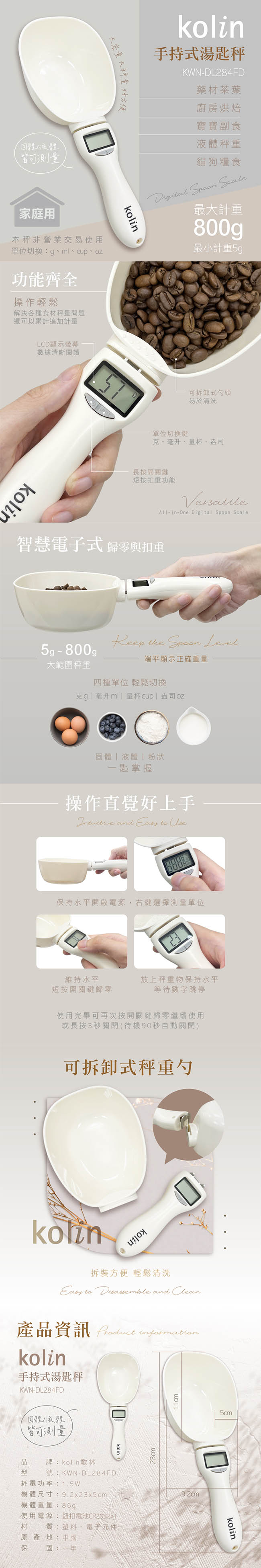 歌林Kolin 手持式湯匙秤 KWN-DL284FD