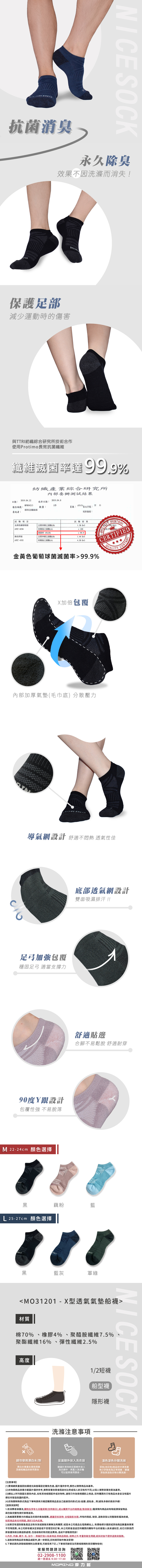 ◎與TTRI紡織綜合研究所技術合作,使用Protimo長效抗菌纖維,有效抑制細菌孳生,防止異味產生。