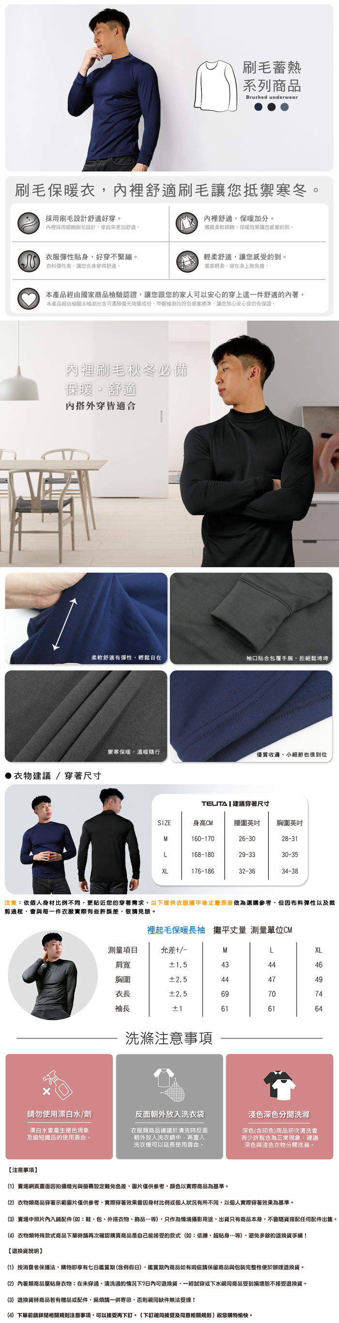【 TELITA】蓄熱刷毛長袖高領上衣-XL號-丈青-TA9901】