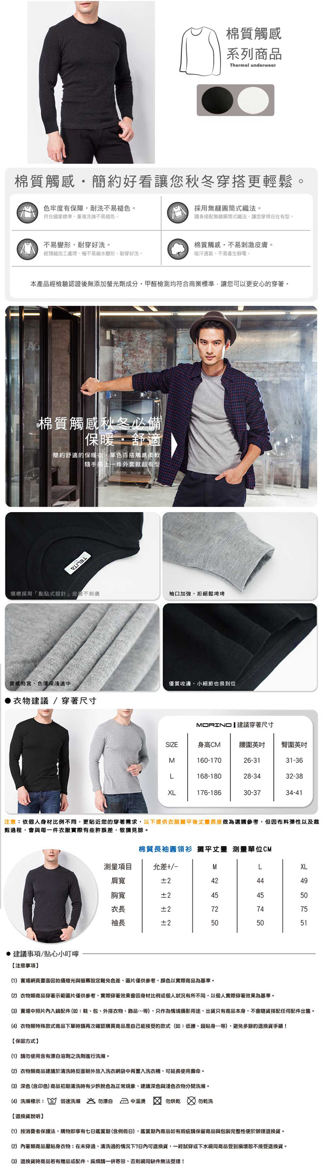 【 TELITA】純棉長袖圓領衫/T恤/圓領內衣-M號-黑色-TA9905】