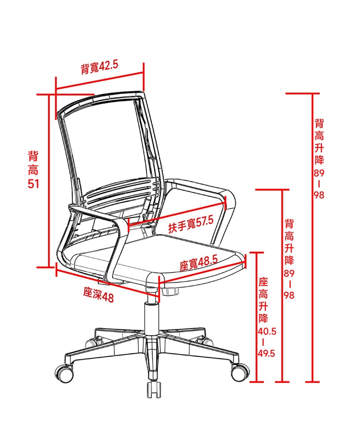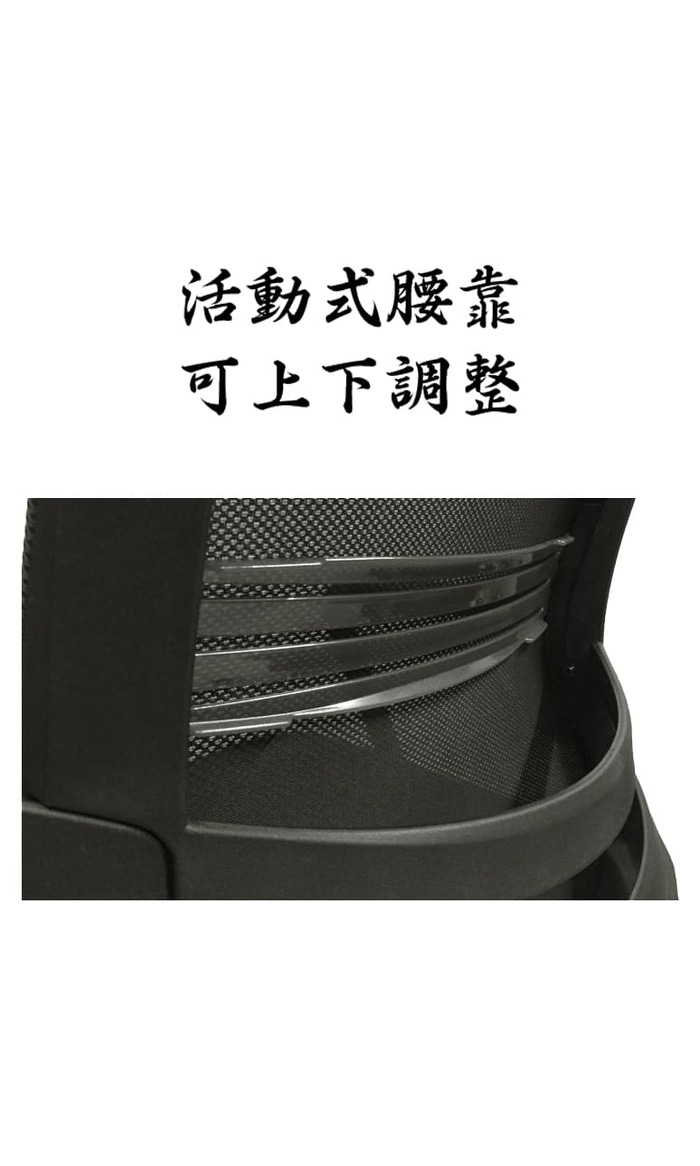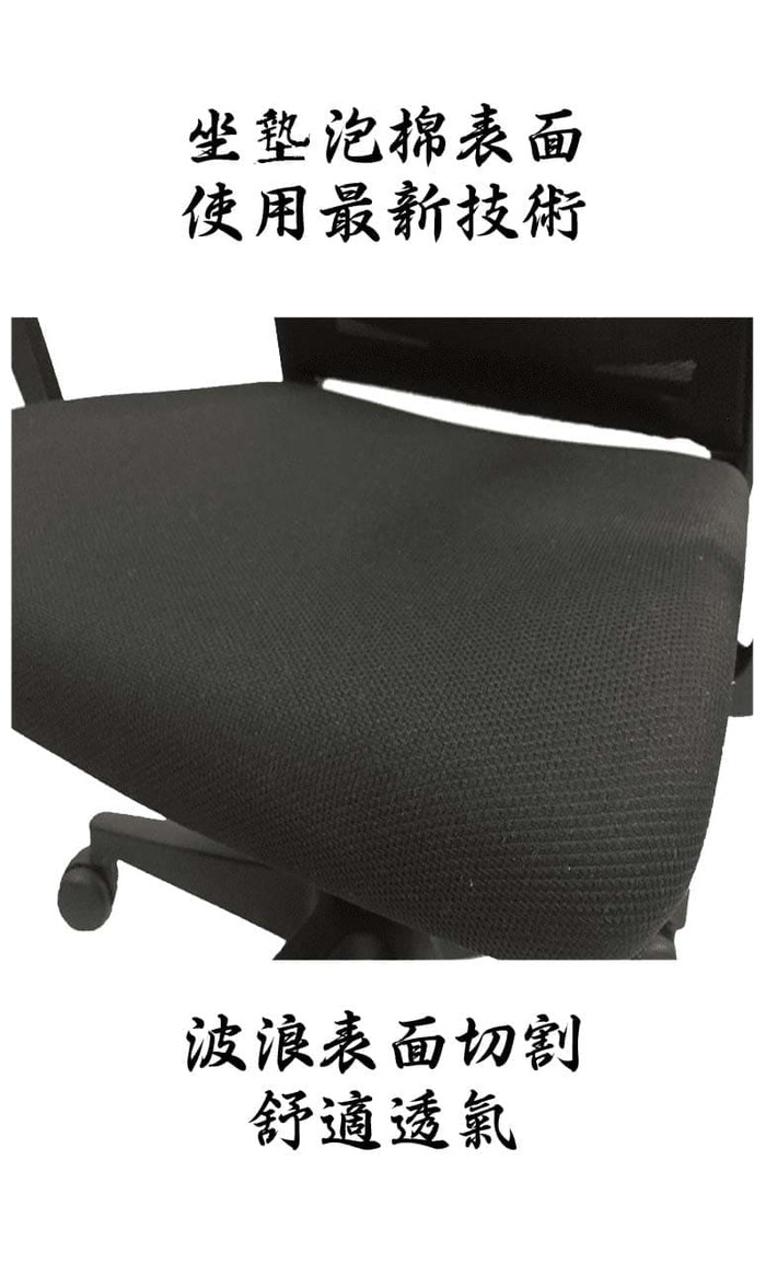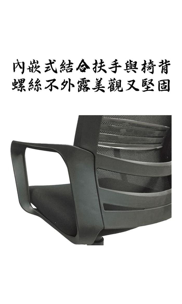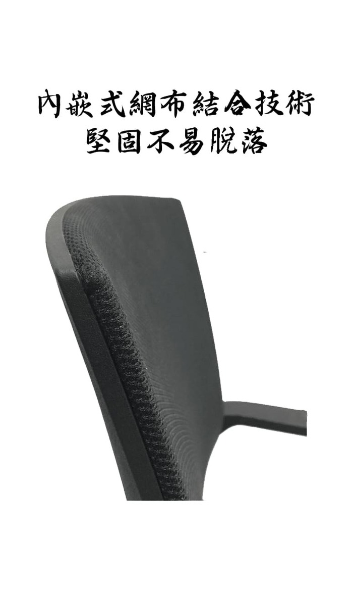椅背:成型框架,面覆黑色網布