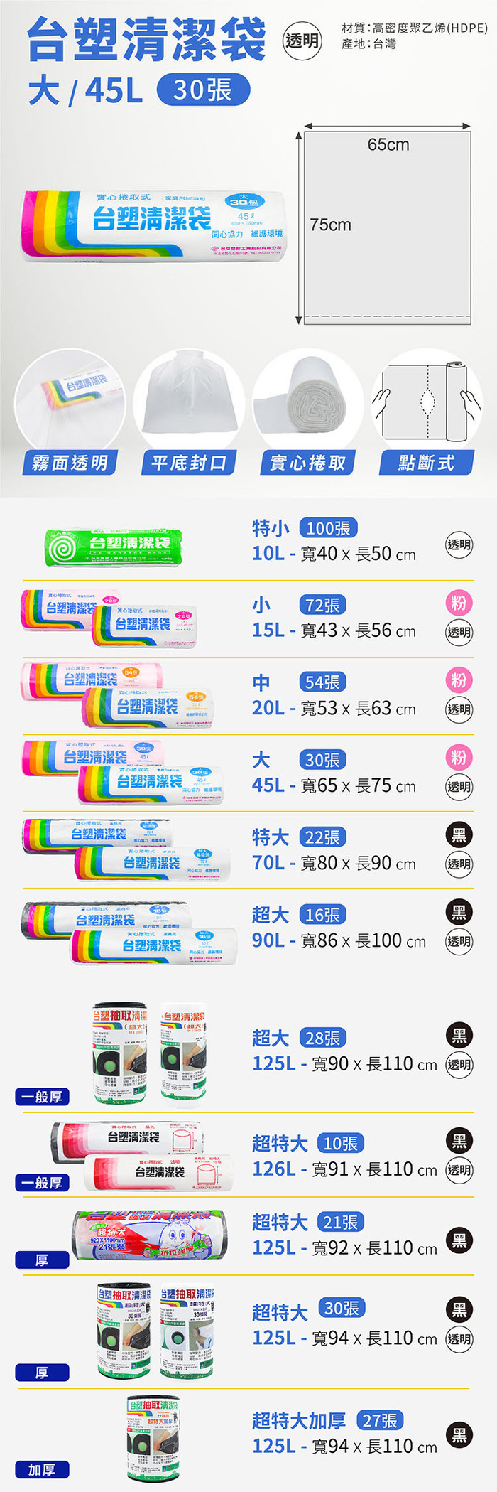 ● 65*75(cm),45L,30張