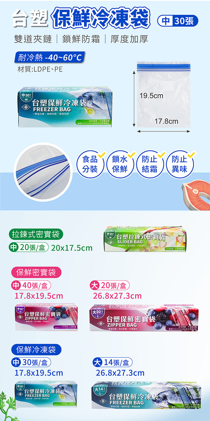 【 <加油金兌換>台塑 保鮮 冷凍袋 (中) (17.8*19.5cm) (30張) X 6盒】