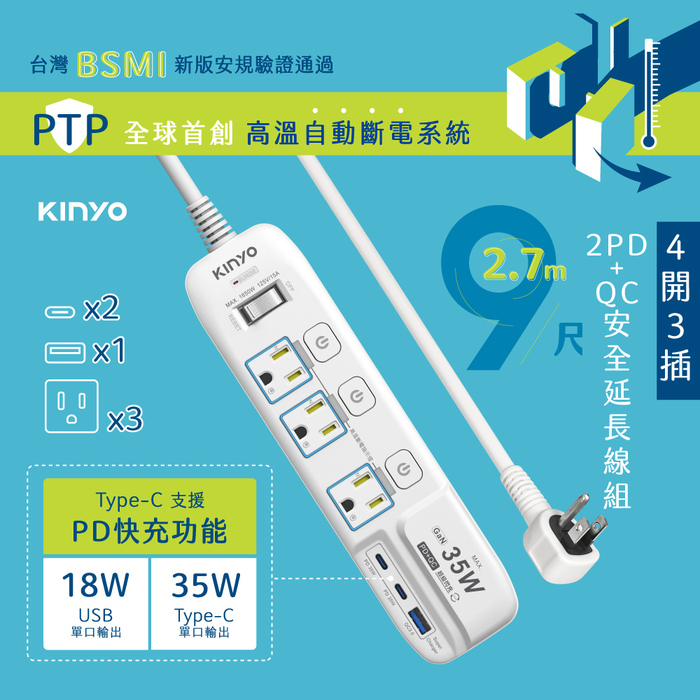 PD(35W) : TYPE C1/C2 5V=3A、9V=3A、12V=2.92A