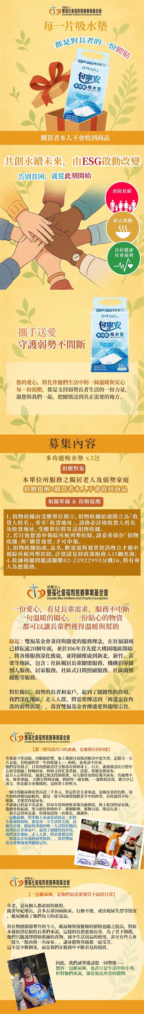 商品名稱:《雙福基金會x愛心募集》愛心多功能吸水墊募集(購買者本人不會收到商品)